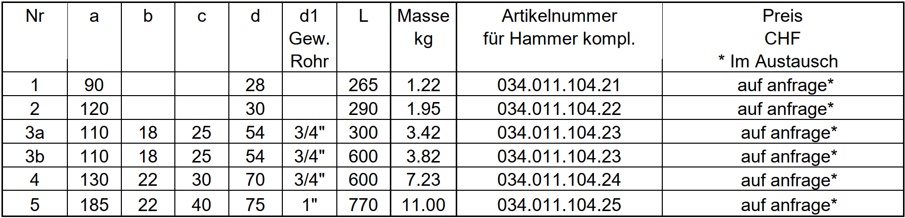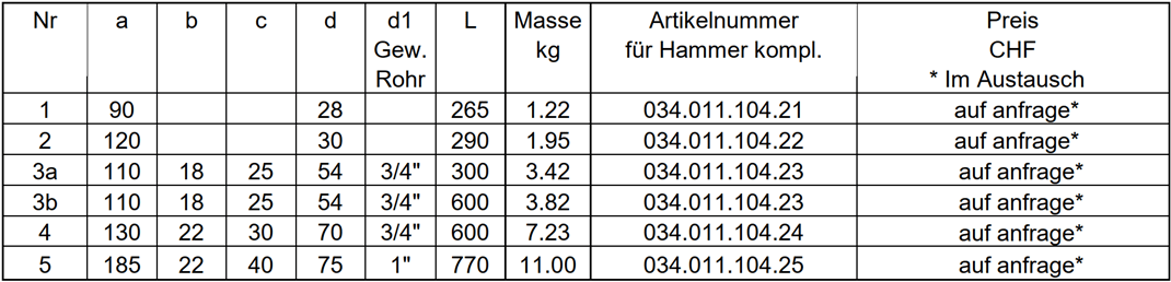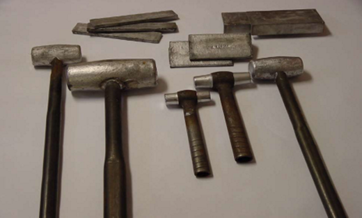 Bleiprodukte wie Hammer, Backen etc.